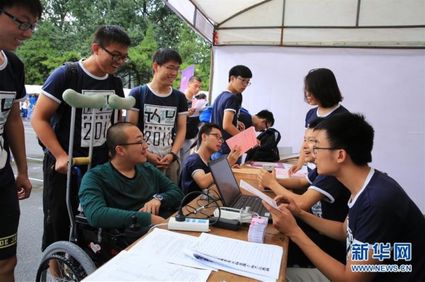 8月23日,社會(huì)廣泛關(guān)注的“想帶媽媽上清華”的甘肅省定西市學(xué)生魏祥(坐輪椅者),在清華大學(xué)辦理新生注冊(cè)。