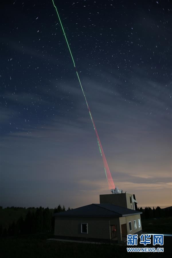 6月15日,在烏魯木齊南山觀測(cè)站,“墨子號(hào)”量子科學(xué)實(shí)驗(yàn)衛(wèi)星過境,科研人員在做實(shí)驗(yàn)(合成照片)。