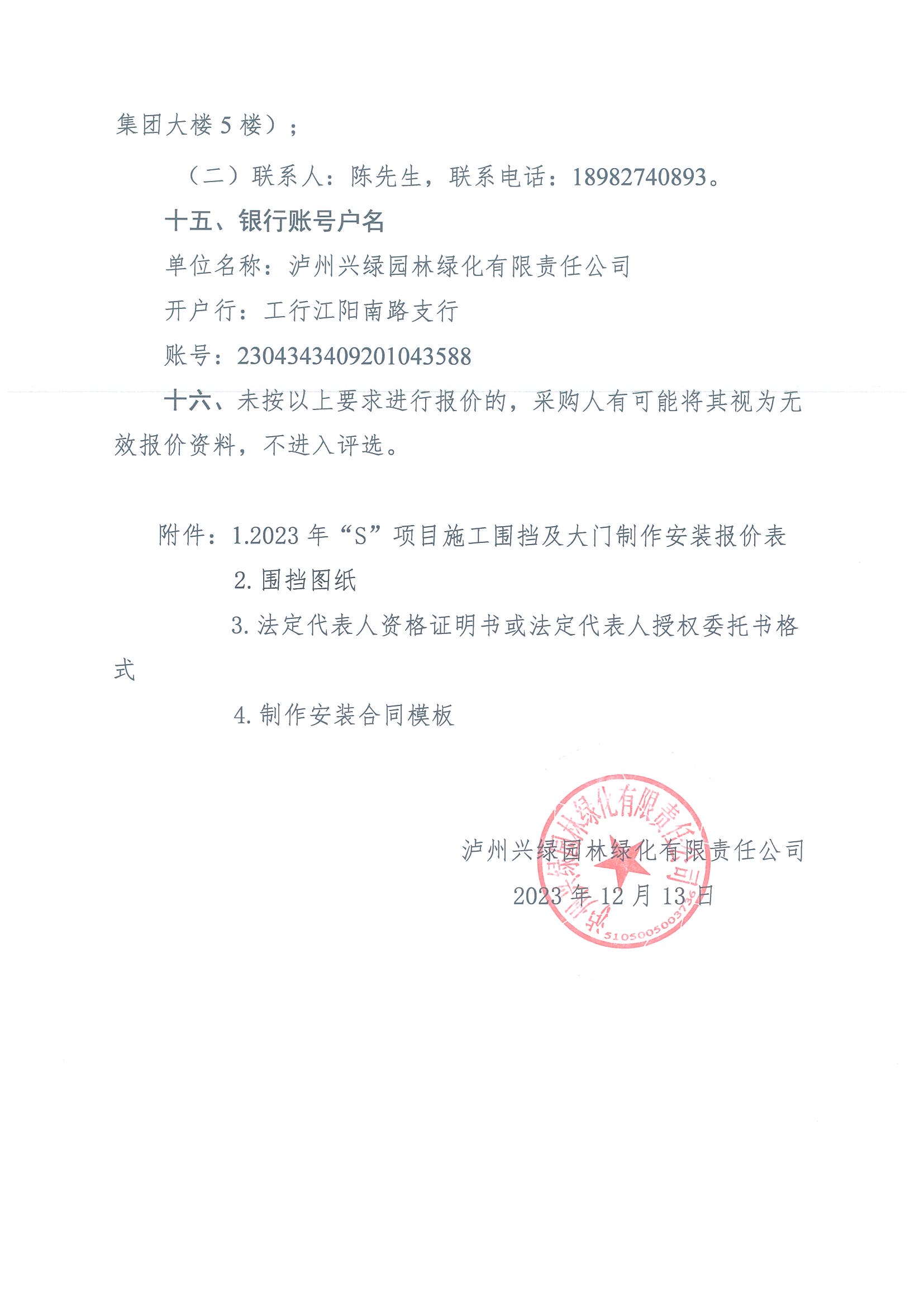 2023年“S”項(xiàng)目施工圍擋及大門(mén)安裝詢價(jià)公告